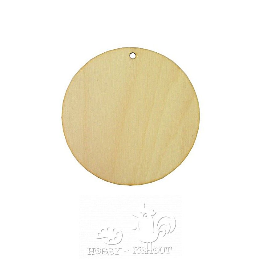 Dřevěné kolečko s otvorem k zavěšení, velikost 5 cm, vyrobeno z překližky 1,5 - 2 mm za pomoci laseru. Lze použít jako dekoraci a materiál pro další tvoření, aranžování a jako podklad pro ubrouskovou techniku.