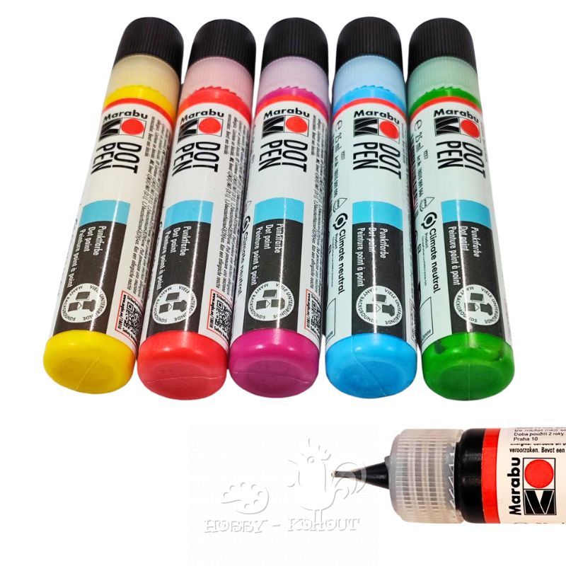 Barva DOT PEN je univerzální barva na malování nebo tečkování. Můžete je použít na různé podklady i na látky s příměsí syntetiky do 20% podílu. Barvy jsou na vodní bázi, klimaneutrální a 100% veganské. Barvy jsou po zaschnutí matné. Můžete malovat na kameny, tmavý i světlý textil, malířské plátno, dřevo, keramické odlitky, sádru, kov atd. Doporučujeme také na tečkování na kameny.