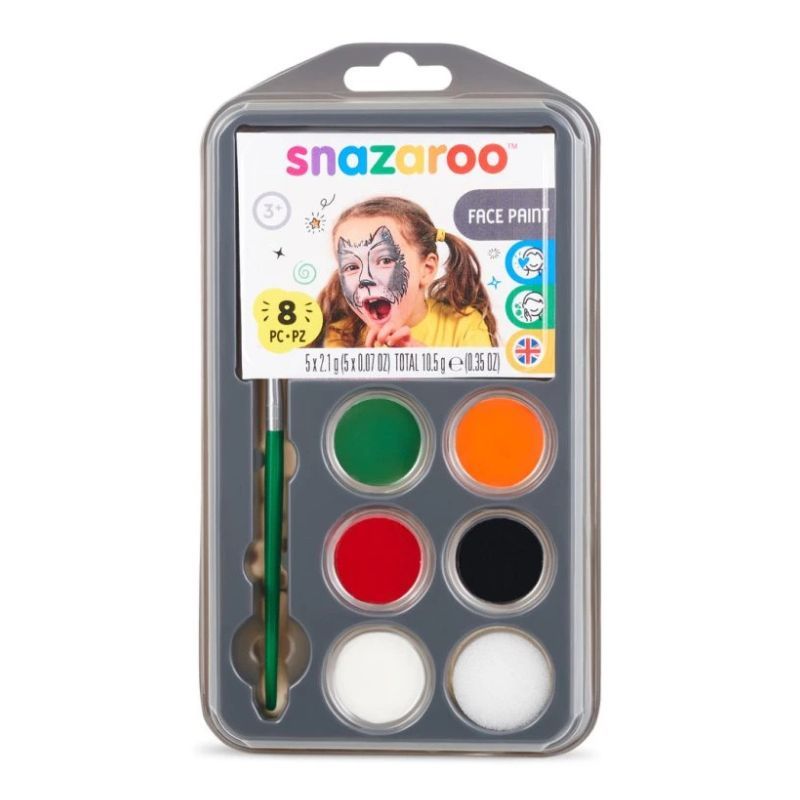 Sada profesionálních barev na obličej a tělo s vysokou krycí schopností. Sada obsahuje: 5x 2ml barev, štěteček a obrázkový návod. Profesionální kvalita, barvy splňují nejpřísnější normy EU na kosmetické produkty. Barvy můžete nanášet jednoduše navlhčeným štětcem nebo houbičkovou jako make-up. Snadno se smývají vodou a mýdlem.