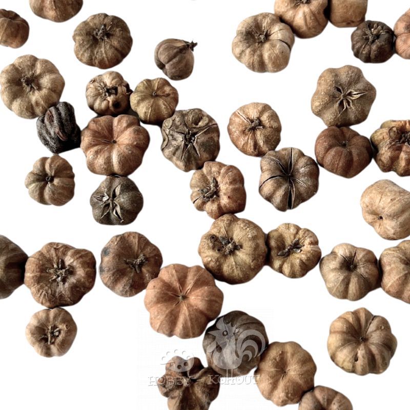 Dřevnaté plody, přírodní dekorační materiál, Balení sáček 15 g, velikost bobulí cca. 1 -1,5 cm. Určeno k floristickému použití, zdobení věnců, aranžování výzdoby a pod.