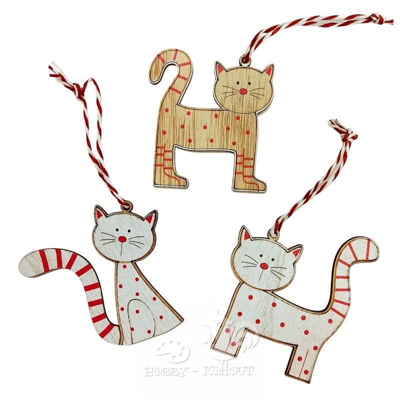 Dřevěné dekorace k zavěšení 3 různé druhy s motivy koček, velikost cca. 7 x 7 cm. Vhodné pro aranžování a zdobení pro milovníky kočiček a pro tvoření s dětmi. Hotový výrobek můžete zavěsit za šňůrku, přilepit na magnetku nebo přilepit tavnou pistolí na podklad