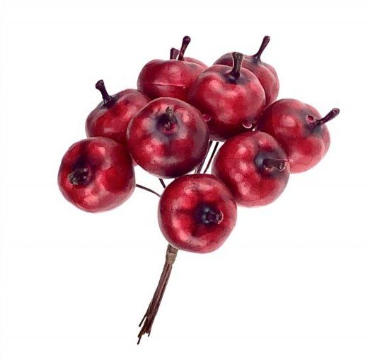 Dekorační jablíčka, svazek 10 ks, stonky z drátku. Velikost 2 cm, délka 12 cm. Dekoraci můžete zapíchnout do aranžmá nebo přilepit tavnou pistolí na podklad.