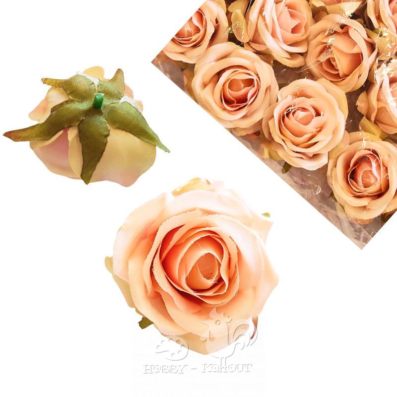 Květ růže do vazeb o průměru cca. 5 x 5 cm. Dekoraci můžete zapíchnout do svatebního aranžmá, na věnec nebo přilepit tavnou pistolí na libovolný podklad. Umělá květina, je velmi krásná, vydrží a bude ozdobou ke každé sváteční příležitosti.