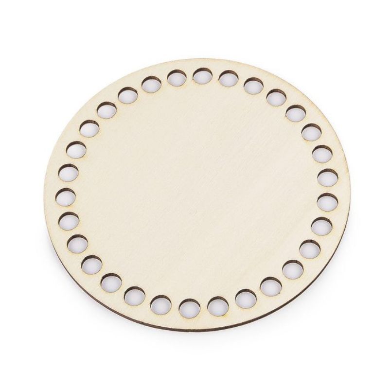 Podložka kruh 15 cm s otvory pro osnovy na pletení a háčkování košíků ze špagetové příze, na výrobu drhaných obrázků, závěsů a na výrobu lapačů snů. Kruh má 37 otvorů, průměr dírek 7 mm a je vyřezáno laserem z překližky o tl. 2 mm. Překližku můžete domalovat např. akrylovými barvami, popisovači nebo použít ubrouskovou techniku - decoupage.