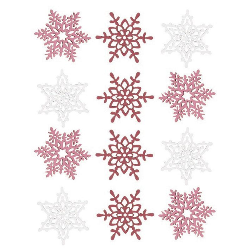 Dřevěná dekorace - vločky 4 cm bordové a bílé 12 ks