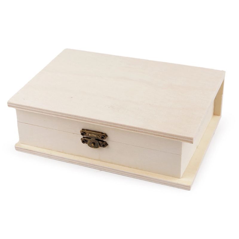Krabička dřevěná s kovovým zavíráním, rozměr 17,5x12,5x5,5cm, dřevo je nelakované, vzadu kovové panty. Polotovar je připravený na další výtvarnou tvorbu, zdobení, malování, mozaiku, decoupage a ubrouskovou techniku.