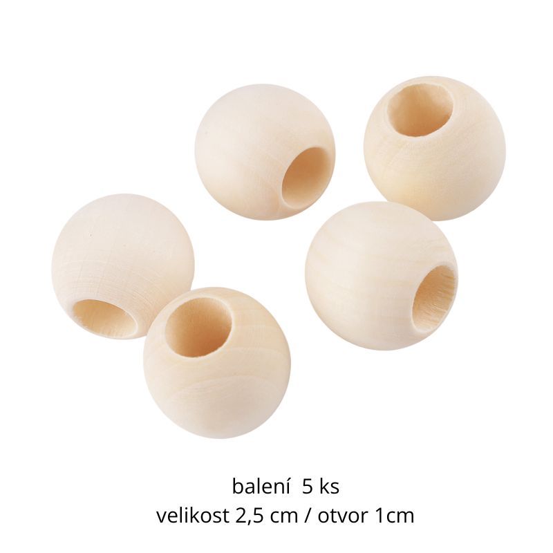 Balení korálků 5 ks, průměr korálku 25 mm, průměr vrtaného otvoru 10 mm, nelakované dřevo. Vhodné pro pletení z pedigu, korálky je možné namořit barvou, protože jsou z přírodního materiálu.