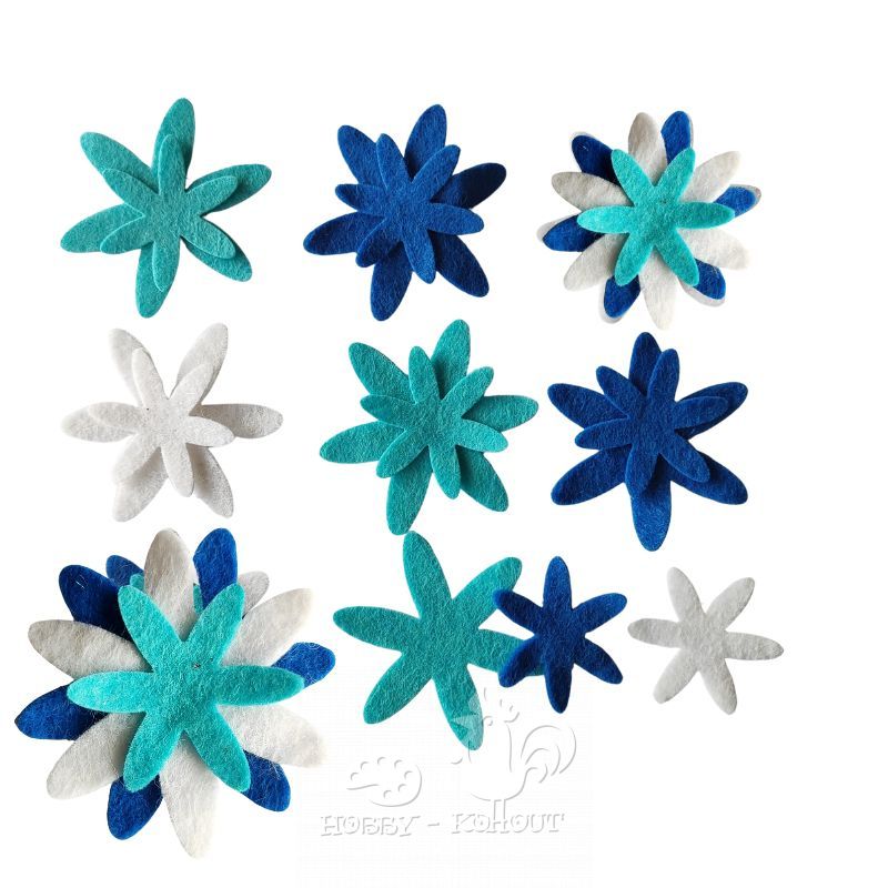 Filc kytičky 18 ks mix - modrá, tyrkysová
