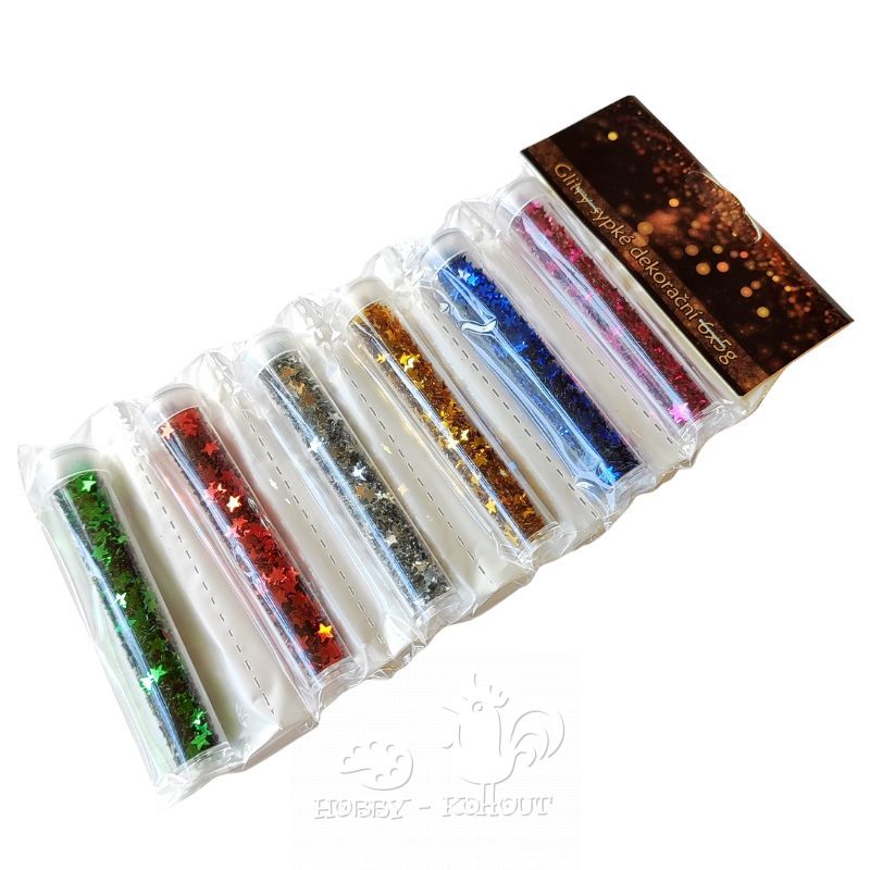 Třpytky hvězdičky dekorační sada 6 ks balení á 5 g se používá ke zdobení výtvarných prací, vánočních dekorací, ozdob, přáníček, koláží, obrázků, plastových koulí atd.