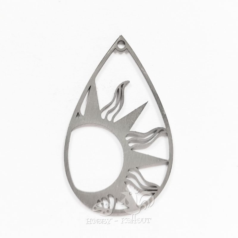 Kovový přívěsek - slunce kapka 40x24 mm chir. ocel