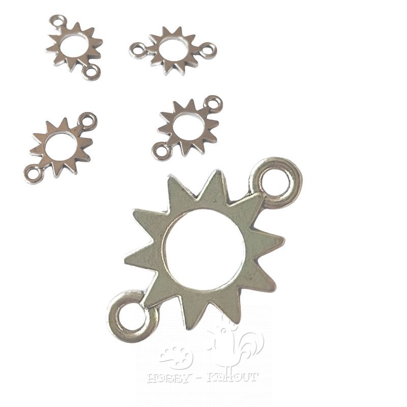 Kovový přívěsek slunce - 1 kus, velikost 18 x 11 mm stříbrná barva. Vhodný na výrobu lapače snů jako ozdobná dekorace.