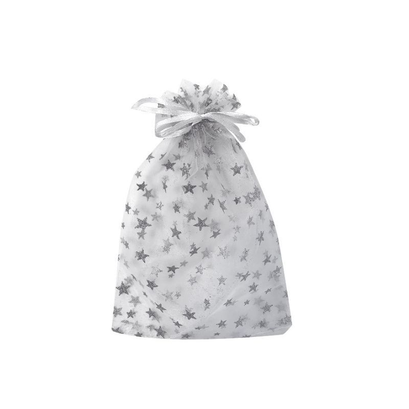 Organzový sáček 7x5 cm vánoční s hvězdičkami