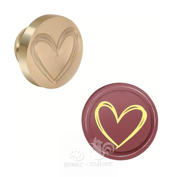 Kulaté pečetidlo na vosk s motivem srdíčka o průměru 2,5 cm, šroubovací motiv z kovu. Vhodné pro výrobu blahopřání, papírové tvoření a scrapbook.