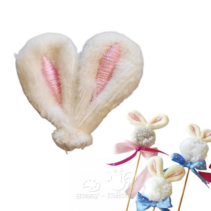 Plyšové uši na zajíčky a králíčky, velikost cca. 4 cm. Vhodné na výrobu jarních dekorací a jednoduché tvoření s dětmi. Zaječí uši můžete přišít nebo přilepit tavnou pistolí.