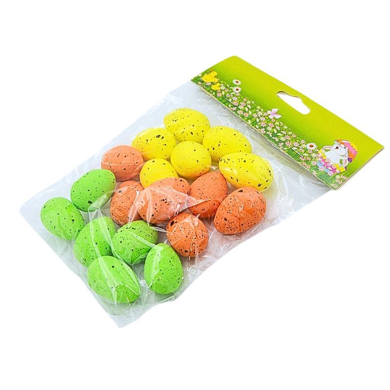 Barevná polystyrenová vajíčka velikost 3,5 x 2,5 cm, balení 18 ks. Dekorační materiál pro floristickou výzdobu a jarní tvoření.