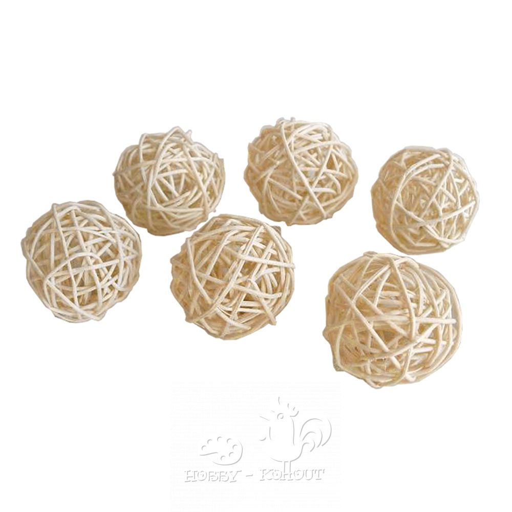 Kuličky ratanové bělené, přírodní ve světlé barvě, dekorační materiál, průměr cca. 3 cm.