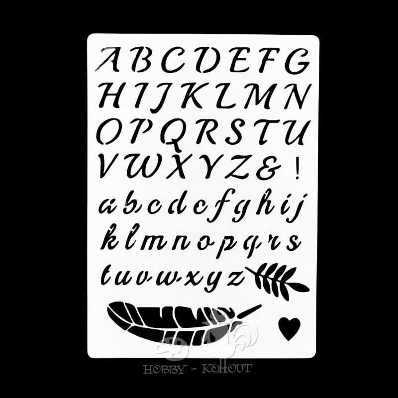 Šablony na malování: Abeceda malá a velká, peříčko 17,5 x 12,5 cm