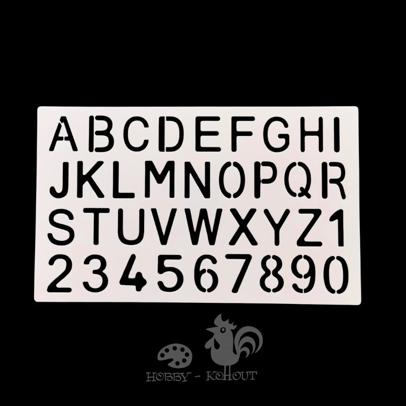 Šablona na textil a malování, celá abeceda velkých písmen + číslice. Celková velikost plastové šablony 24,5x15 cm, výška písma 2,8 cm. Vhodné pro práci s textilními barvami a akrylovými barvami. Barvy nanášejte houbičkou nebo tupovacím štětcem, k fixaci šablony můžete použít po obvodu malířskou lepenku, ulehčí vám to práci. Šablony po použití opatrně očistit a omýt, než barva zcela zaschne. Před dalším použitím osušit, aby nedošlo k rozpíjení barev při následném malování.