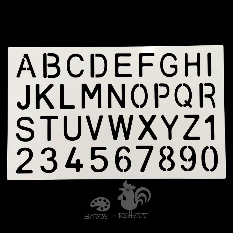 Šablona na textil a malování, celá abeceda velkých písmen + číslice. Celková velikost plastové šablony 35x21,5 cm, výška písma 4 cm. Vhodné pro práci s textilními barvami a akrylovými barvami. Barvy nanášejte houbičkou nebo tupovacím štětcem, k fixaci šablony můžete použít po obvodu malířskou lepenku, ulehčí vám to práci. Šablony po použití opatrně očistit a omýt, než barva zcela zaschne. Před dalším použitím osušit, aby nedošlo k rozpíjení barev při následném malování.