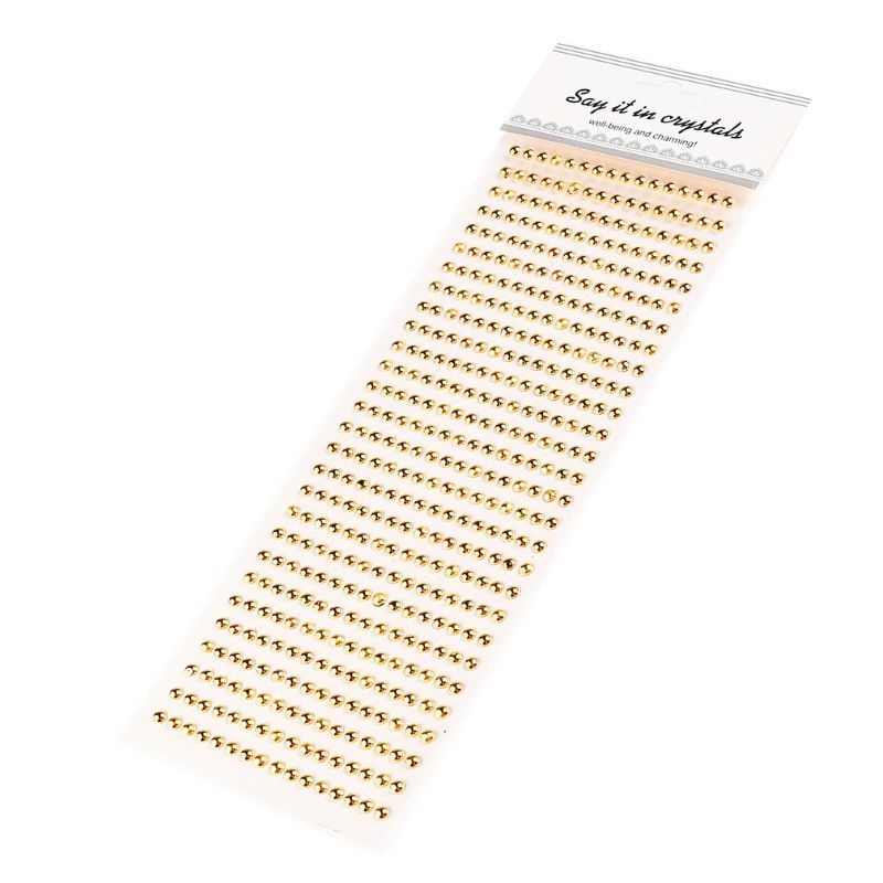 Adhézní samolepící perličky zlaté, balení 448 ks. Jsou vhodné na scrapbook, průměr perliček cca. 5 mm. Jsou vhodné na scrapbook jako ozdobná dekorace pro výrobu blahopřání a dekorací z papíru. Doporučujeme je lepit na suchý, hladký a pevný povrch. Využijete je ke zdobení mobilů, tabletů, počítačů, přáníček, krabiček, rámečků fotografií, květináčů, fotoalb apod.
