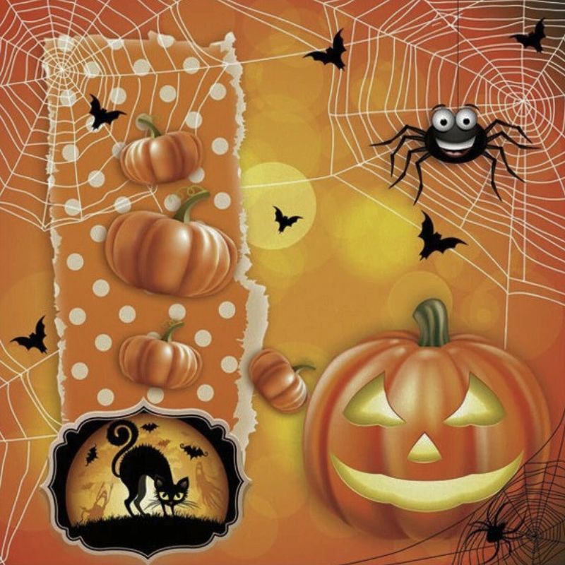 Ubrousek na decoupage - vzor 2512 dýně, kočka, pavouk