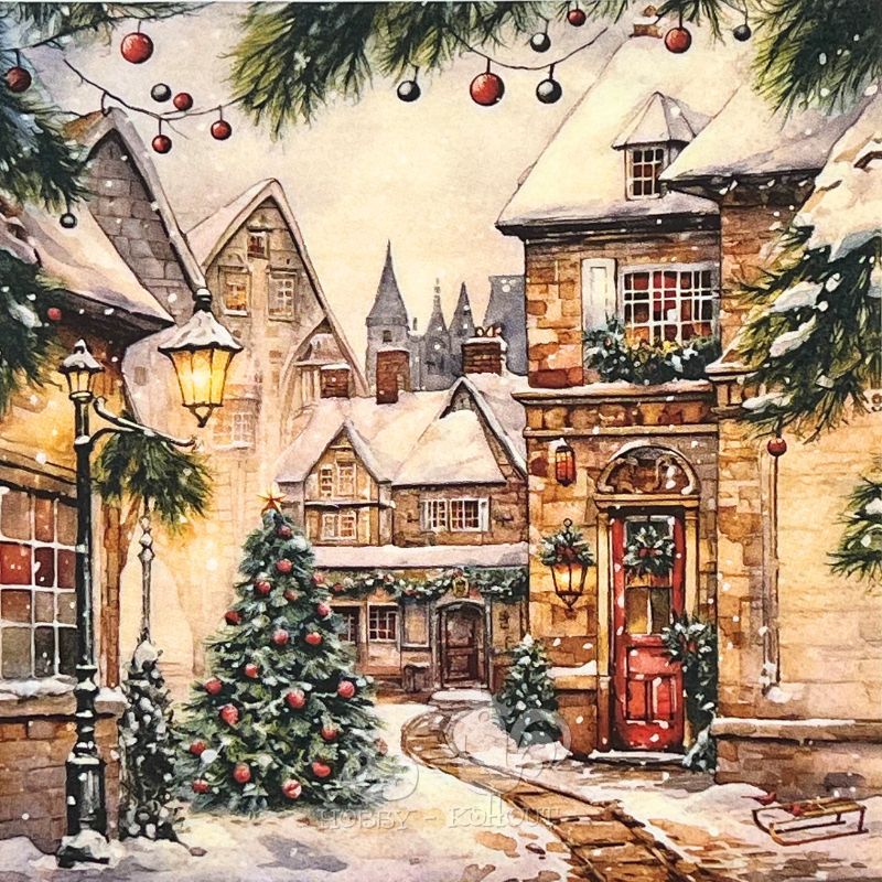 Ubrousek na decoupage - vzor 3301 domečky, vánoce